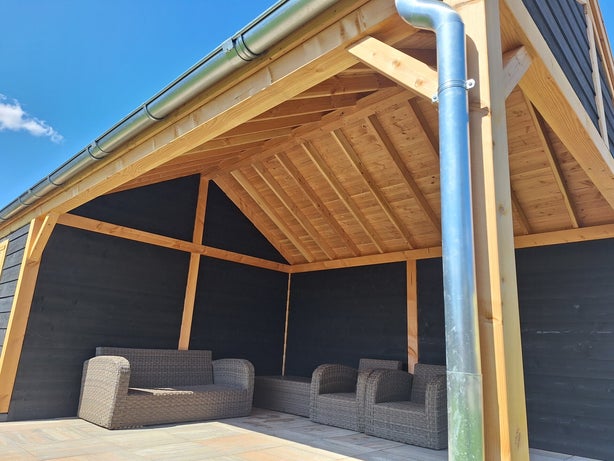 Zevenhuizen, Ontwerp en realisatie van ruime overkapping en schuur. (totaal 8x4 meter)